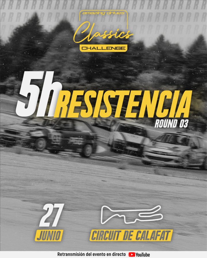 Llegamos al ecuador de la Temporada 2026 de las Amazing Drives Classics Challenge repitiendo en el mítico circuito de Calafat con esta Resistencia de 5h. Tan sólo unos pocos equipos que no han hecho inscripción de Temporada Completa podrán participar. ¿Será uno de ellos? Si parpadeas, te lo pierdes. ¿A qué esperas?