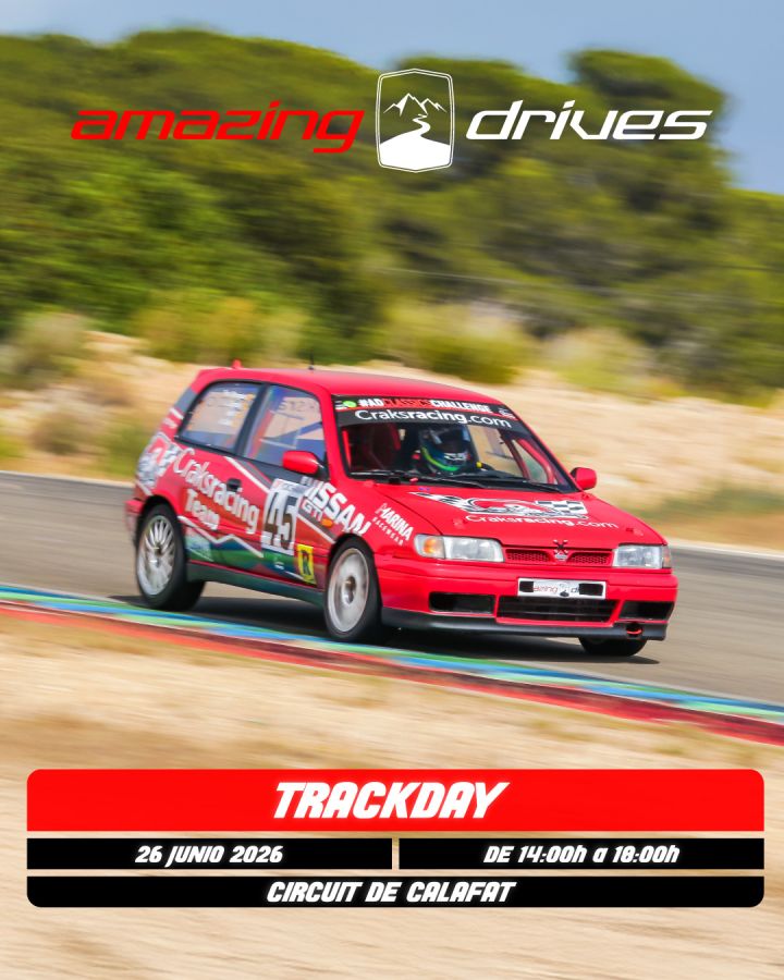 Trackday de tarde en Calafat para todo tipo de vehículo, con especial participación para los vehículos de las Amazing Drives Classics Challenge. De 14h a 18h en formato Open Pit Lane. Atención: el horario puede verse sensiblemente modificado durante la última semana antes del evento por conveniencia del circuito.