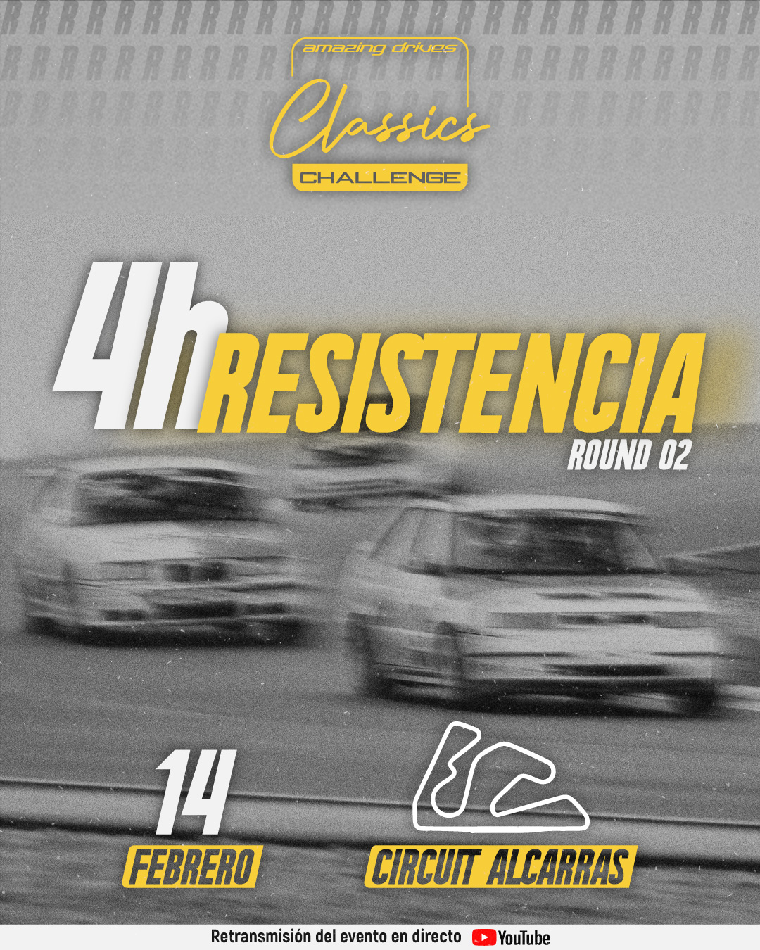 Segunda prueba de la Temporada 2026 de las Amazing Drives Classics Challenge en el queridísimo circuito de Alcarràs con esta Resistencia de 4h. Después de las inscripciones de Temporada Completa, quedan muy pocas plazas disponibles. Si parpadeas, te lo pierdes. ¿A qué esperas?