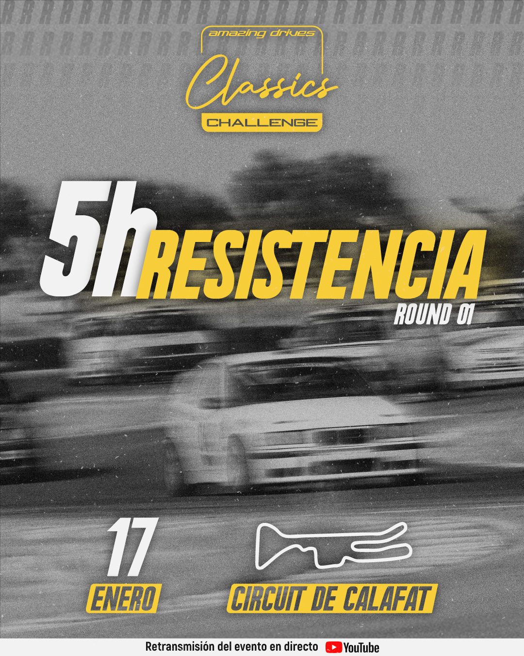 Empieza la Temporada 2026 de las Amazing Drives Classics Challenge en el mítico circuito de Calafat con esta Resistencia de 5h. Muchas novedades en el Reglamento, una reestructura de las Categorías, la aparación de las Clases y nuevos años de admisión de vehículos ¿Quién saldrá con la victoria de este primer evento? Después de las inscripciones de Temporada Completa, quedan muy pocas plazas disponibles. Si parpadeas, te lo pierdes. ¿A qué esperas?